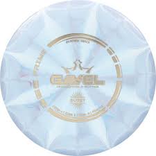 The Dynamic Discs Prime Burst Gavel is a golf disc made of Dynamic Discs's special prime plastic, which features color bursts throughout the disc. The Gavel is an understable putt and approach disc designed for all skill levels. It's part of Dynamic Discs's Easy-to-Use line of golf discs, along with the Breakout and the Proof. The Gavel has the same basic shape and bead as the Judge