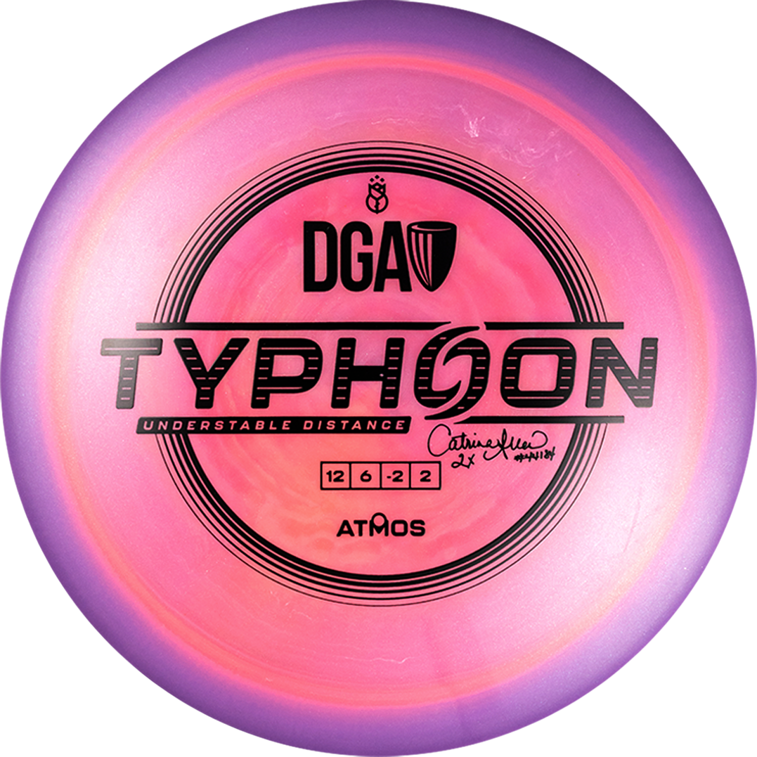 The DGA Typhoon is a high-speed distance driver designed for effortless distance and controlled turnovers. It's designed to blend speed, glide, and finesse, allowing players to shape long turnover shots and execute precise flex lines with confidence.