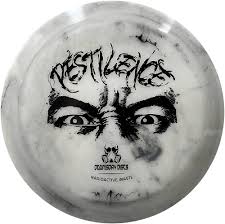 The Doomsday Discs Radioactive Waste-Pestilence is a wide-rim, understable distance driver made of glow-in-the-dark "Radioactive Waste" plastic. The plastic is grippy and premium, making it a popular choice for disc golf players. The Pestilence is part of Doomsday Discs' Catastrophic Line of discs and is recommended for beginners and all skill levels.