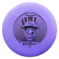 The Voodoo is a good choice for lay-ups and straight-line putting. It has a similar mold to the Wizard but with a smaller rim bead, and some say it feels comfortable in the hand and flies like a broken-in Wizard. The Voodoo Eraser is made of firm, grippy Eraser plastic and has a round rim with a microbead. It has a flight path distance of 200–600 ft and some say it's good for putting, with a nice stable and straight flight.