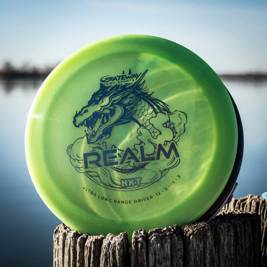 The Gateway Discs Realm is a high-speed, overstable distance driver designed for maximum distance, particularly for power throwers.