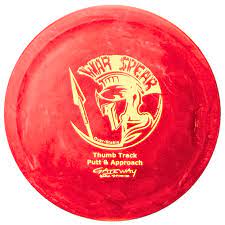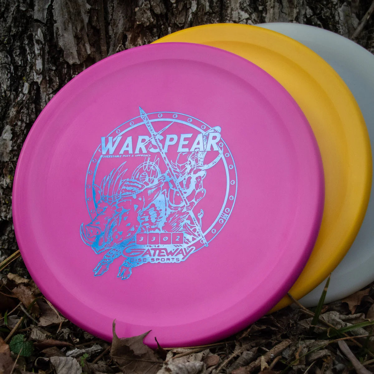 The Gateway Sure Grip Warspear is a low profile putt and approach disc with a blunt nose and no bead. It also has a Thumb Track design for added control and feel. It has a bullet shaped nose and a beadless wing similar to the Shaman.