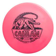 The Innova Champion Caiman is a disc golf mid-range with an overstable flight and a microbead rim. It has a similar flight to the Gator, but without the large bead. The Caiman has minimal glide and a strong fade, making it reliable in all wind conditions. It offers fierce control in windy conditions, pinpoint sidearm and approach accuracy, and is great for forehand and backhand