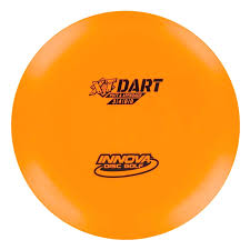 The Innova Dart is a popular, small-diameter putt and approach disc known for its exceptionally straight flight and high glide, making it suitable for long putts and controlled approach shots. Its flight numbers are consistently rated as Speed 3, Glide 4, Turn 0, Fade 0.