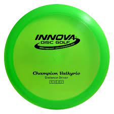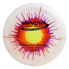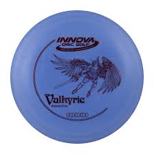 The Innova Valkyrie is a turnover fairway driver with great glide. It is a good choice for tailwind or downhill drives and is available in a large variety of plastic. The Valkyrie is a stable to understable control driver that is great for all skill levels, but is perfect for beginners who are improving their arm strength. It can be thrown well and hold most lines it is thrown on.