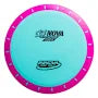 The Innova XT Nova is an exceptionally straight-flying putt and approach disc, distinguished by its unique overmold technology that provides a confident grip and minimal ground play. It is a reliable choice for players of all skill levels seeking precision and consistency in their short game.