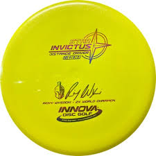 The Innova Invictus is an overstable distance driver designed for advanced players who need a reliable, wind-resistant disc. Its name is Latin for "unconquered," reflecting its reliable fade and ability to hold its line against headwinds. Many pros, including Innova Star Team athlete Garrett Gurthie, have relied on the Invictus.