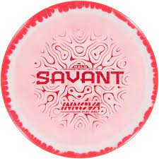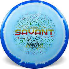The Innova Savant is a fairway driver that is considered to be stable to slightly overstable, depending on the plastic type and individual throw. It's a popular choice for its ability to combine controlled distance with a predictable flight path.
