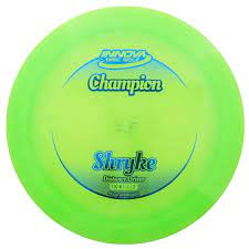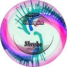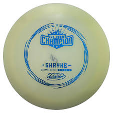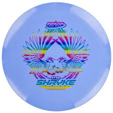 The Innova Shryke is a distance driver golf disc that is designed for long turnover shots and downhill throws. It has a sharp edge and wide rim, and has a -1 turn and 3 fade. The Shryke has exceptional glide and distance potential, but is not recommended for beginners due to its high speed.
