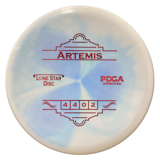 - Flight Numbers: The Artemis has flight numbers of 4/4/0/2, meaning it has a speed of 4, a glide of 4, no turn (straight flight), and a fade of 2 (a strong finish to the left for right-hand backhand throws).