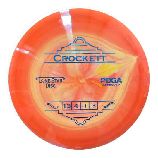 The Lone Star Disc Crockett is a high speed, high glide, overstable distance driver that is perfect for max distance flex lines, fighting headwinds, and reliable hyzers. It is an overstable, high speed distance driver that bridges the gap between the Bowie and the Seguin. It is a trusted go-to bomber that the pros are looking for.