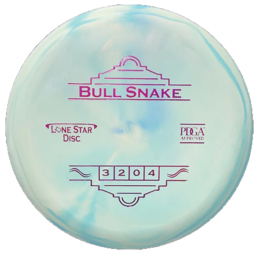 The Lone Star Disc Bull Snake is ideal for precision in disc golf. With its strong shoulder, microbead, and elongated wing, this overstable disc will get you closer to the pin. Made of a grippy plastic material, it also features a deeper rim for optimal performance.