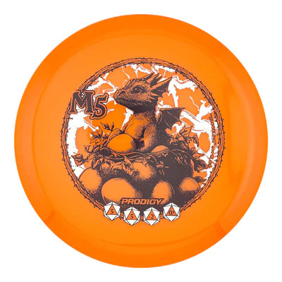 The Prodigy Disc M5 is an understable midrange perfect for any player, adding a whole new dimension of shot shapes to our M-Series with its understable yet controllable flights, impressive glide, and smooth feel. Out of the box, those familiar with Prodigy's lineup will find this flies like a seasoned M4 with a reliable turn and impressive glide. This disc replaces the original version created in 2014.