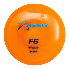The Prodigy Disc F5 is a high speed, stable to under stable fairway driver. It is designed for all skill levels and flies extremely far and incredibly straight. The F5 will turn up slightly when thrown hard it will go into a long glide before finishing gently to the stable side.