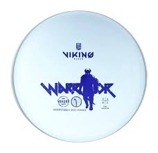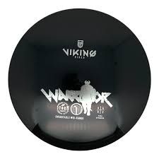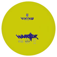 The Viking Discs Nordic Warrior has flight numbers of Speed: 4, Glide: 4, Turn: 0, and Fade: 2. It is a stable midrange disc that can handle a lot of power and still fade back at the end of its flight. The Nordic Warrior is best for big hyzers and windy situations, and feels good in hand with both backhand and forehand grips