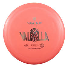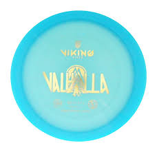 The Viking Discs Valhalla is a stable distance driver disc golf disc. It's designed to be thrown with a line and fade at the end of its flight to hit a target. The Valhalla has a speed of 12, glide of 5, turn of 0, and fade of 2. It's stable enough to maintain its glide in windy conditions, and some say it's comfortable to grip for both forehand and backhand throws.