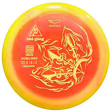 The Yikun She Gong is a disc golf disc that is a max distance driver with a wide rim. It is made from Yikun's Glaze plastic. The She Gong is a good choice for straight to fade distance and for players with more power, it can hyzer flip and ride for long distances.